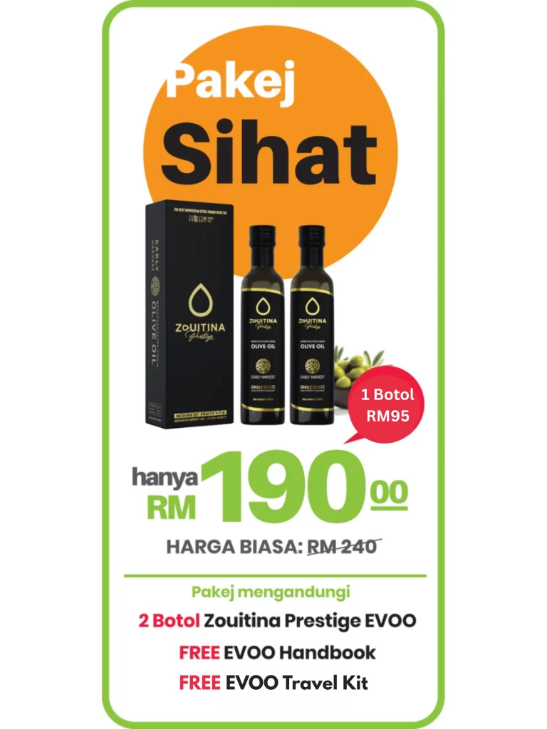Extra virgin olive oil (EVOO) dapat membantu menurunkan kolesterol jahat (LDL), mengurangkan keradangan. EVOO juga membantu penghadaman dan memberikan rasa kenyang lebih lama, sekali gus menyokong kawalan berat badan.